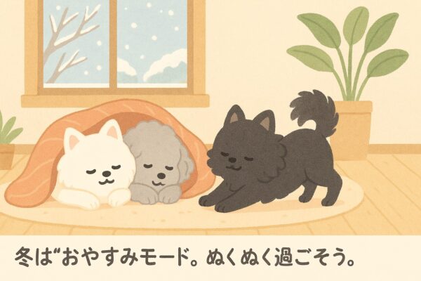「冬の眠りは心と体の休憩時間。愛犬のリズムに寄り添って、あったかく過ごしてね☀️」