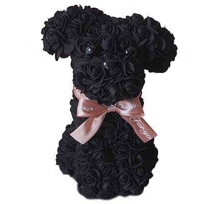 枯れないお花で作られた黒プードル。記念日やペットメモリアルにも人気🎀